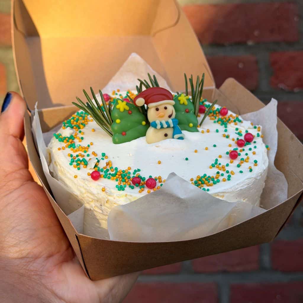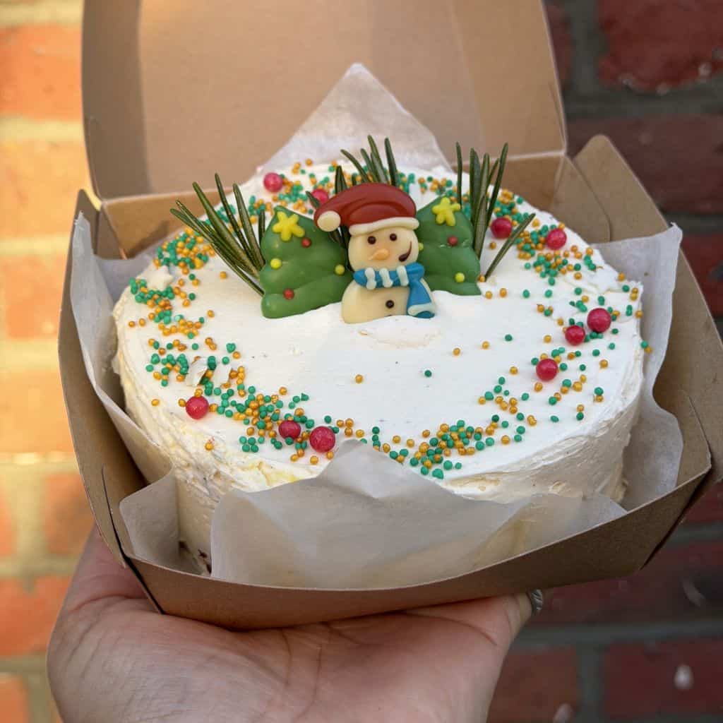 Dit is de Bento Jolly Xmas taart die je online kan bestellen bij Amsterdam Cupcake Company. Deze bento kersttaart wordt gedecoreerd zoals op de foto, in een smaak naar keuze.