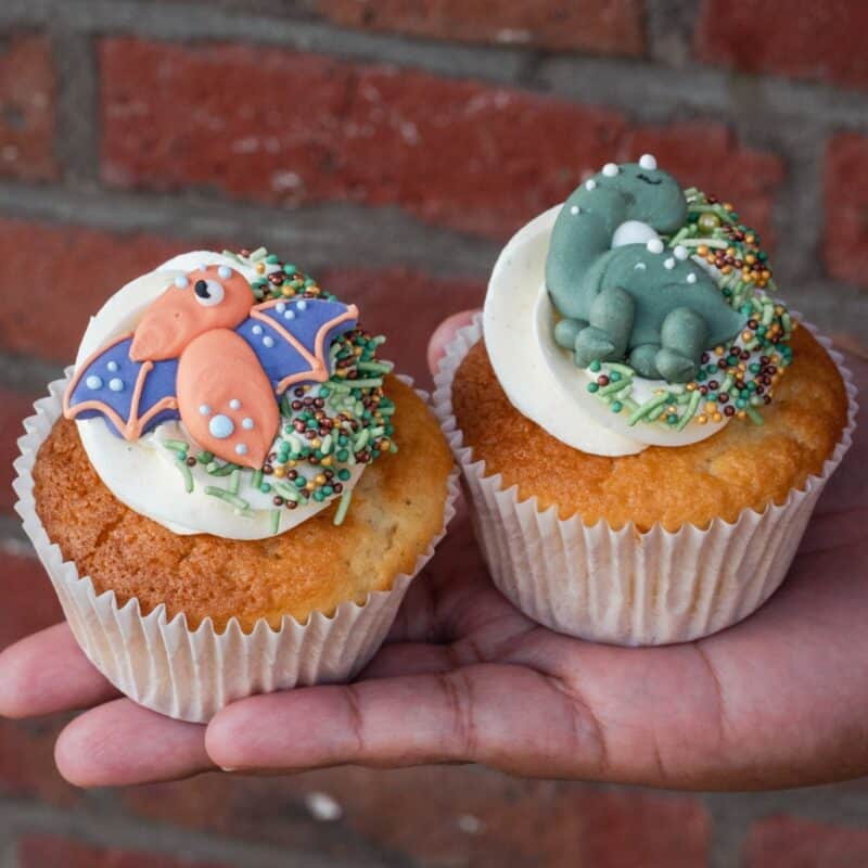 Dinosaurus cupcakes. Perfect voor ieder dinosaurus-thema feestje en voor alle dierenliefhebbers.