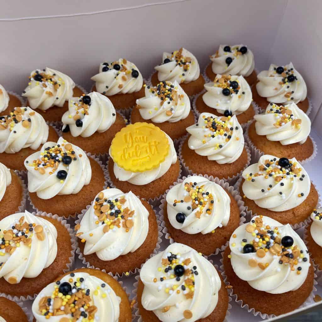 De Great Gatsby cupcake box die je online kan bestellen bij Amsterdam Cupcake Company. De designs in deze box zijn door ons samengesteld en kunnen als gevarieerde box enkel besteld worden zoals op de foto te zien is. De cupcakes bestel je in een mix aan smaken, of kies zelf je smaak als je alle cupcakes in dezelfde smaak wil hebben.